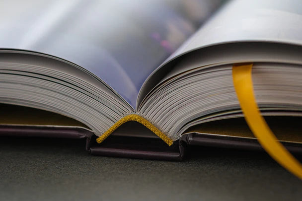 Bindung: Fadenheftung – besonders langlebig und flach aufschlagbar für perfekte Doppelseitenansicht