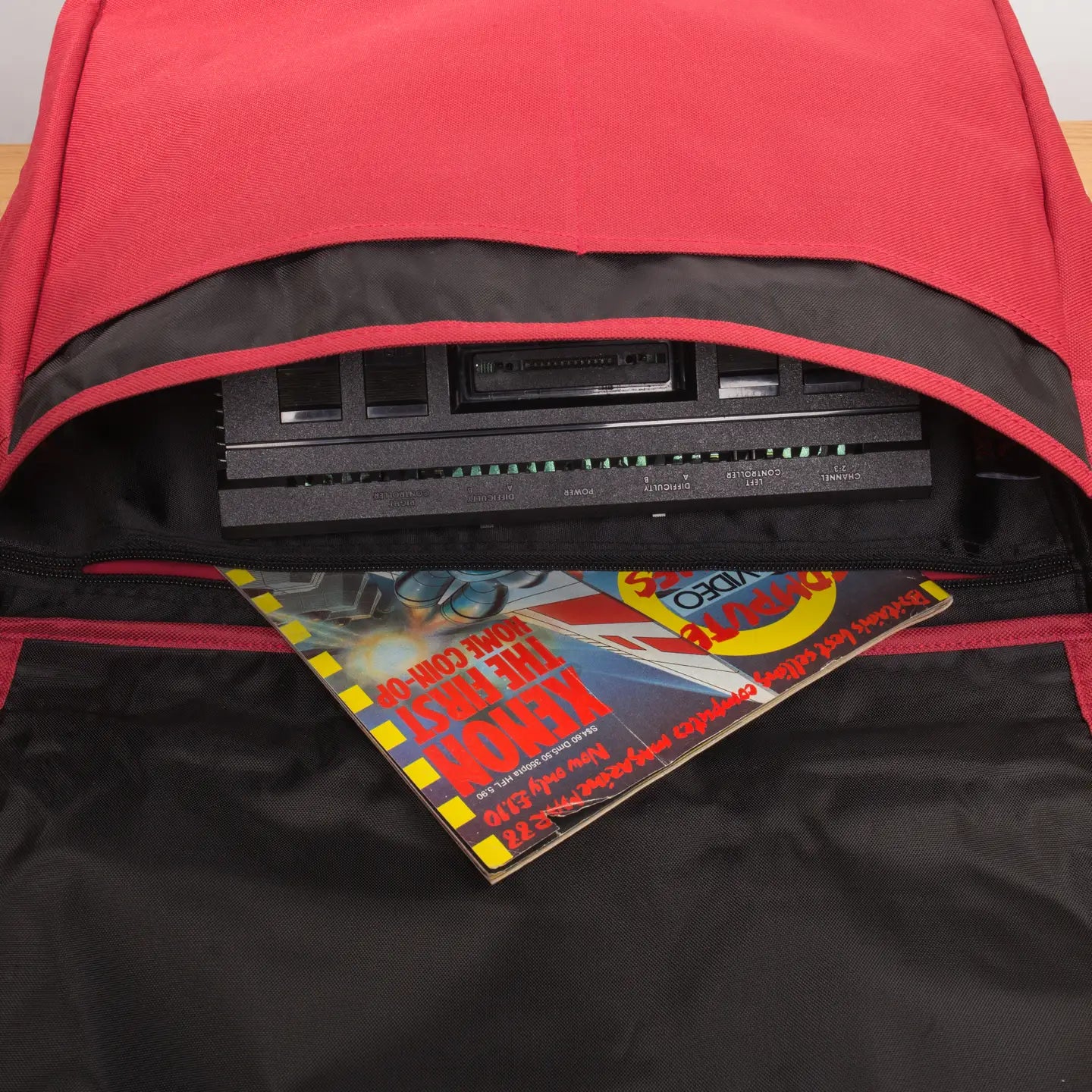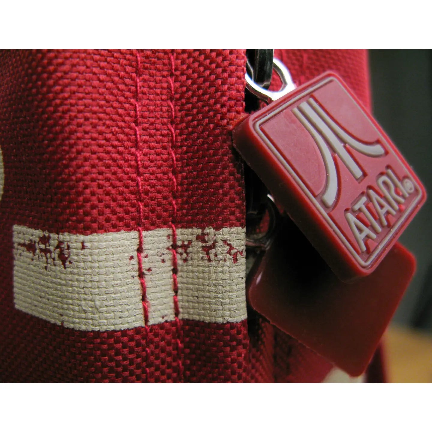 Die Farbkombi ist an das klassische Atari-Logo angelehnt, das du auf jedem Reißverschluss eingeprägt findest und groß auf der Front – zusammen mit coolem japanischen Schriftzug. Vorne gibt’s außerdem ein großes Reißverschlussfach und zwei Clipverschlüsse.