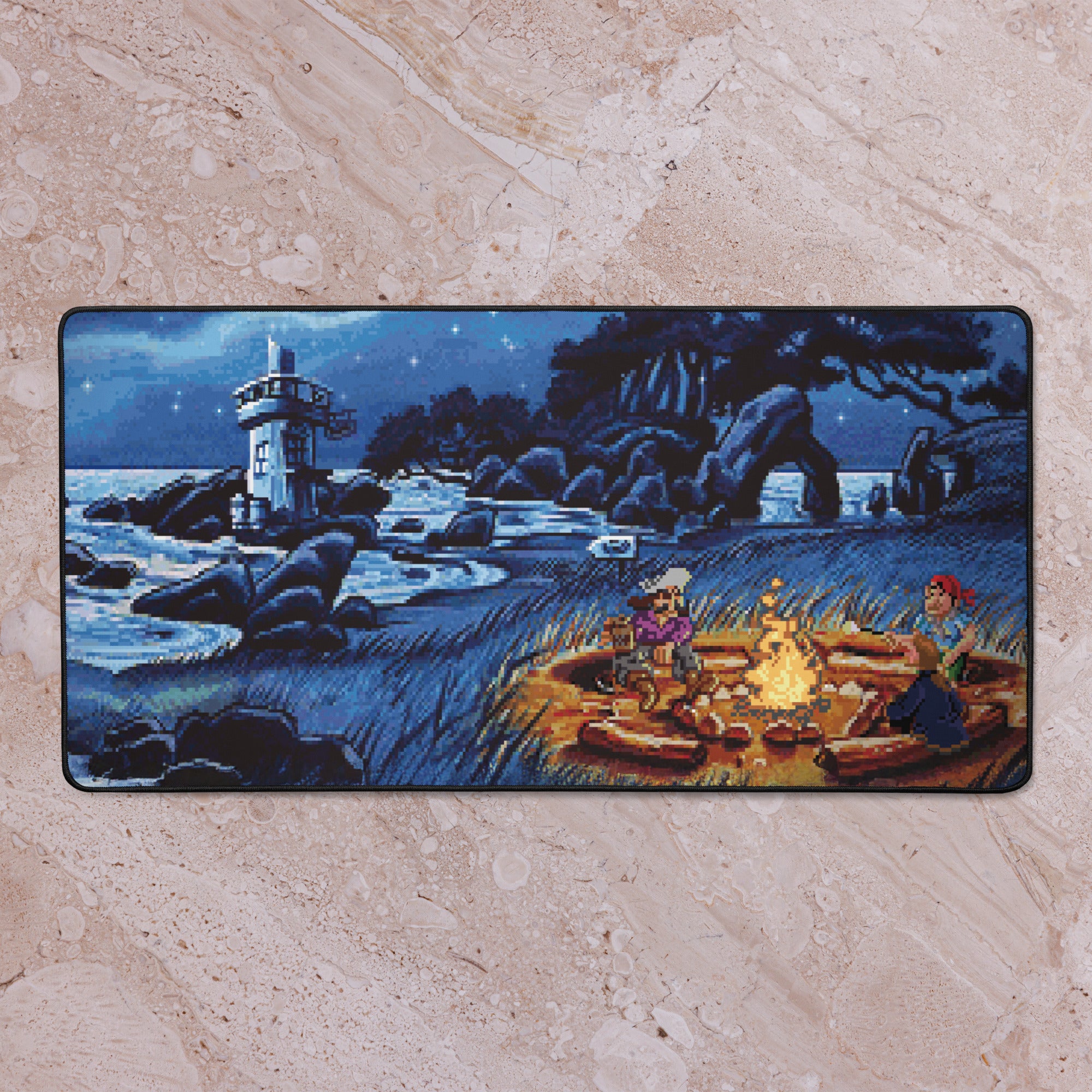 Das Motiv dieses Mauspads zeigt Piraten am Lagerfeuer, irgendwo auf einer einsamen Karibikinsel, im sanften Licht des Mondes. Inspiriert vom ikonischen Anfang eines bekannten Adventure-Spiels der 90er. Die stimmungsvolle Szenerie weckt Erinnerungen an nächtliche Point-and-Click-Abenteuer auf Inseln voller Rätsel und Schätze.